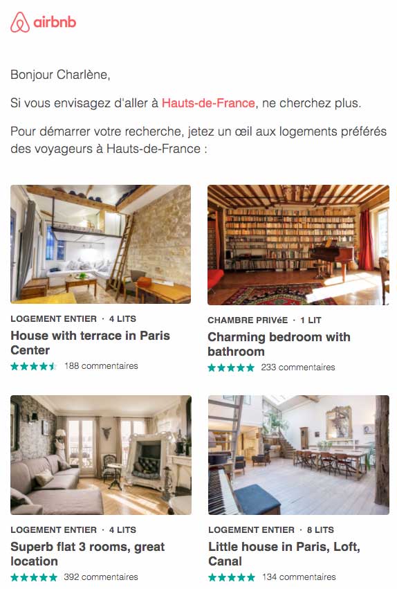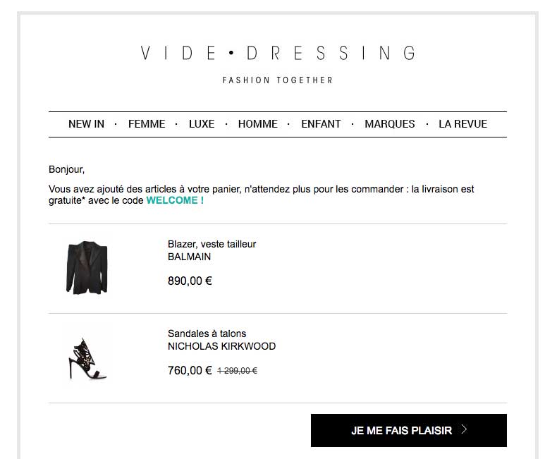 Vous pouvez également mettre en place une stratégie d’emailing pour les paniers abandonnés ou suite à une recherche sur votre marketplace :
