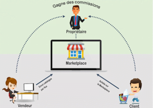 Une marketplace ou place de marché est un site internet qui permet de mettre en relation des acheteurs et des offreurs indépendants dans un espace sécurisé favorisant les échanges, moyennant un commissionnement sur les ventes (généralement entre 5 et 15% du prix de vente). Une marketplace peut renvoyer à différents types d’activités : vente de produits, services, locations, etc.
